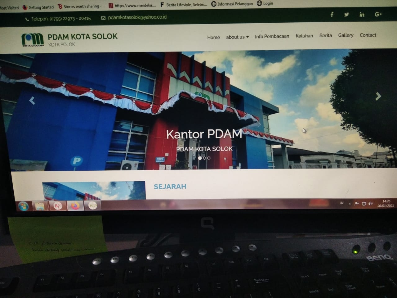 Info Pelanggan PDAM Kota Solok : Senin, 18 Januari 2021.(Jam 11:30 WIB) Gangguan Aliran Air Dikarenakan bocornya pipa dinas DM 200 Sumber Sungai Guntuang Jawi-jawi di bawah BPT1 Selayo. Sampai saat sekarang ini air masih mengalir di harapkan untuk pelanggan PDAM Kota Solok untuk dapat menampu